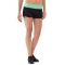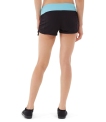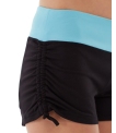 • Black rouched shorts with mint waist.