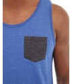 • Blue heather tank with gray pocket.