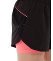 • Black/pink two-layer shorts.