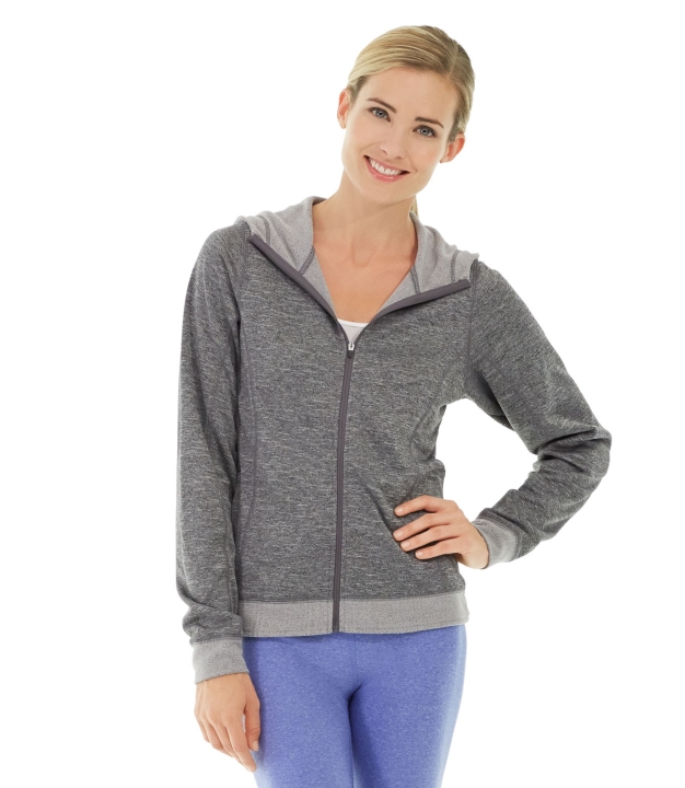 Wear this hoodie after the gym or before a chilly weather bike ride. Either way, this versatile sweatshirt offers an effortlessly appealing silhouette and a super-comfy fit. Smooth, stretchy fabric creates flattering shape, while the full-zip placket and hood help block gusty winds.
