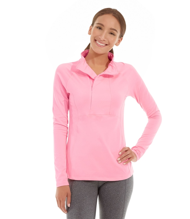 • Pink half-zip pullover.